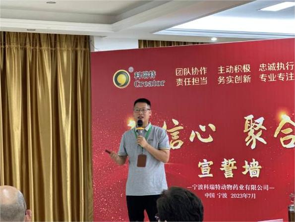 2023年7月7日-7月9日,寧波科瑞特動(dòng)物藥業(yè)有限公司在寧波總公司召開“強(qiáng)信心 聚合力”2023干部大會(huì)。董事長(zhǎng)郭瑞忠先生、副董事長(zhǎng)劉瓊鮮女士、總經(jīng)理王云斌先生會(huì)同全體管理干部共同出席,人事行政部王麗琴女士主持本次會(huì)議。