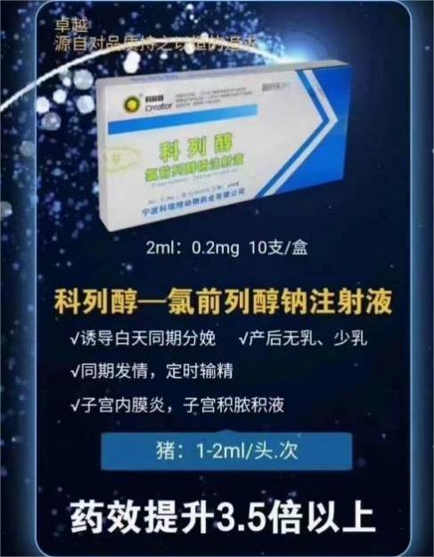 4.4 在母豬分娩后24小時(shí),肌注科列醇1支,有助于排出惡露,促進(jìn)子宮修復(fù),同時(shí)有利于提高泌乳量。