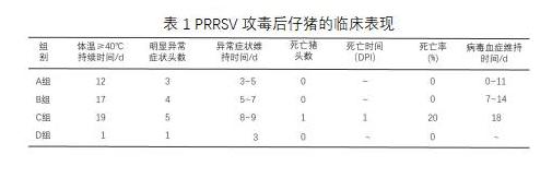 PRRSV攻毒對(duì)仔豬臨床表現(xiàn)的影響情況見(jiàn)表1。