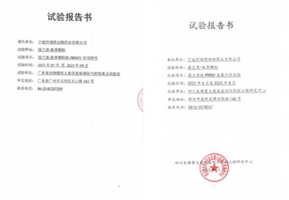2023年6~8月,寧波科瑞特委托四川生豬重大疫病監(jiān)測(cè)與防控工程研究中心,進(jìn)行了《園蘭清防控PRRSV效果評(píng)價(jià)試驗(yàn)》,試驗(yàn)表明園蘭清具有降低PRRSV引起的體溫升高、臨床癥狀持續(xù)時(shí)間、促進(jìn)康復(fù)等作用。