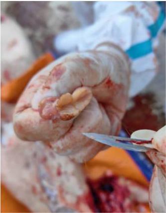 豬場存欄母豬1200頭左右,一直來較為穩(wěn)定,大約一個月前開始發(fā)病。經(jīng)了解,該客戶近一年來一直使用園蘭清方案對母豬進行定期保健,但仔豬僅將掉隊豬集中治療??紤]可能入冬后氣候變化導致藍耳波動,所以建議采用園蘭清+氟苯尼考+替米考星治療,10天后回饋效果不太理想。于是讓獸醫(yī)對病豬進行解剖。病豬的肺部及淋巴結(jié)未見典型的藍耳病變,以肉樣變和出血為主,故建議對藍耳和圓環(huán)抗原抗體進行檢測,方便給出后續(xù)防治方案。