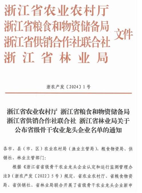 近日,根據(jù)《浙江省省級骨干農(nóng)業(yè)龍頭企業(yè)認定和運行監(jiān)測管理辦法》(浙農(nóng)產(chǎn)發(fā)〔2022〕5號)規(guī)定,經(jīng)主體申報、市級初審?fù)扑]、省糧食安全和推進農(nóng) 業(yè)現(xiàn)代化領(lǐng)導(dǎo)小組農(nóng)業(yè)產(chǎn)業(yè)化辦公室審定,寧波科瑞特動物藥業(yè)有限公司成功認定“省級骨干農(nóng)業(yè)龍頭企業(yè)”。