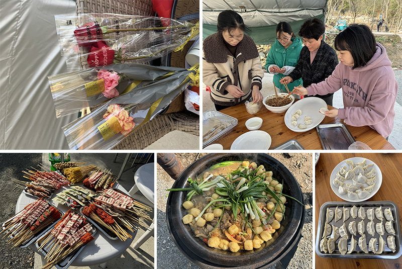 到達(dá)目的地后,大家馬上熱熱鬧鬧開始準(zhǔn)備午飯,有清洗食材的、有生火的、有切菜的、有包餃子的、有生炭燒烤的.....大家有說有笑地忙碌著,談笑間聊聊如何平衡家庭和工作的關(guān)系,分享一下各自的經(jīng)驗和心得,釋放著生活帶來的各種壓力,大家其樂融融,一片歡聲笑語。