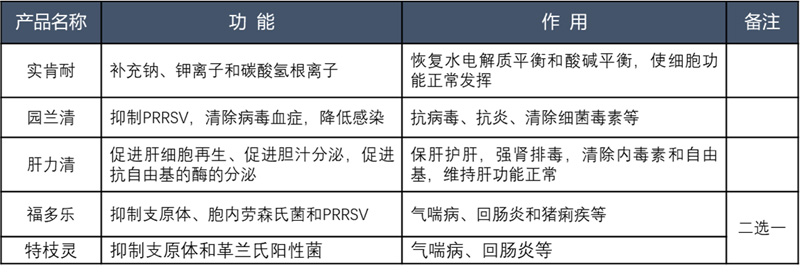 藍(lán)耳陰性場:實肯耐1kg+肝力清1kg+特枝靈200g或福多樂800g