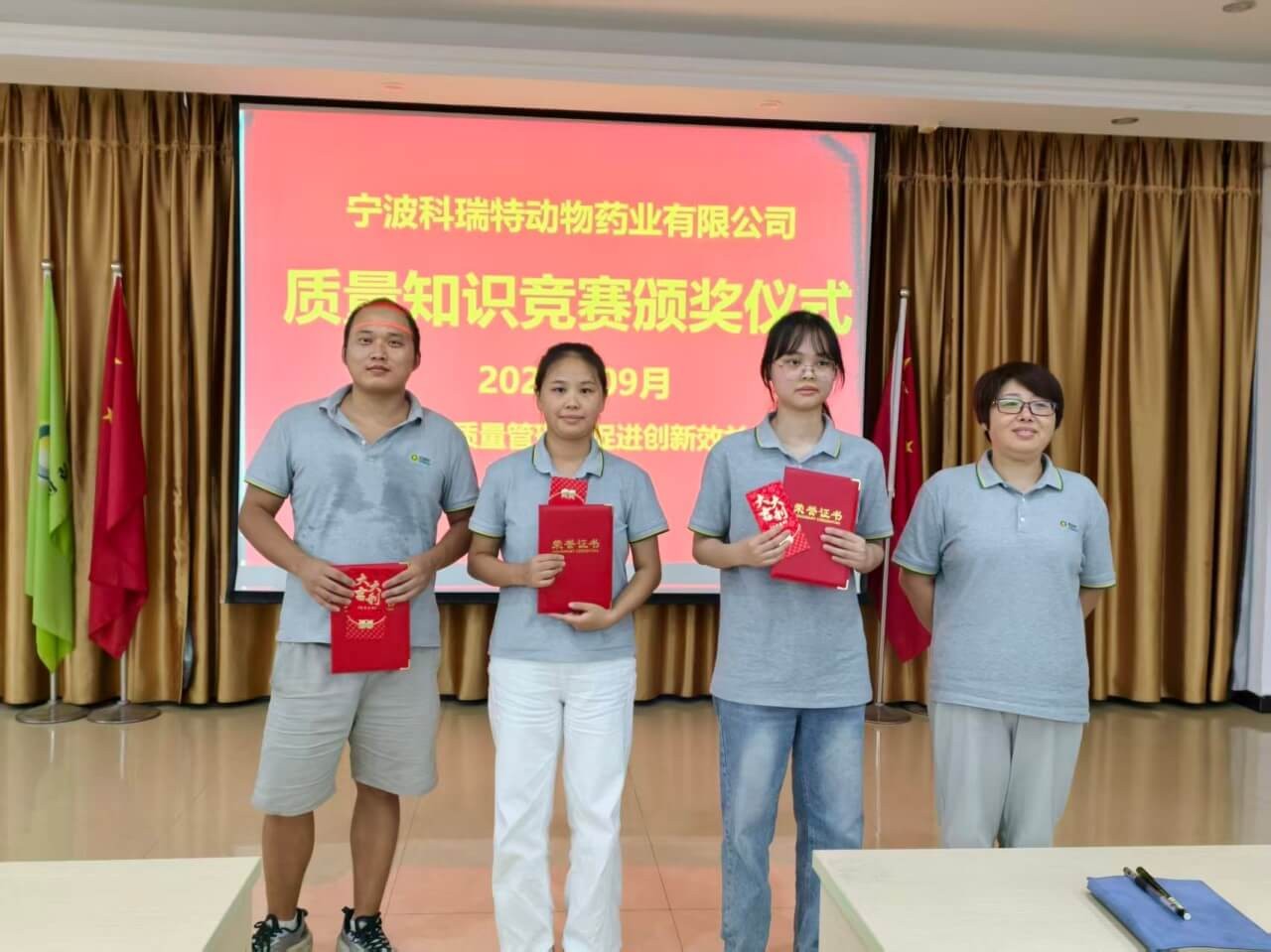 為了進一步提升公司產品質量和全面質量管理水平,提高公司員工質量意識,強化崗位技能,嚴格質量安全監(jiān)管,增強企業(yè)核心競爭力。緊緊圍繞“四個中心”和“做大單品、做強優(yōu)品”的產品策略,為完成全年銷售目標提供有效保障,寧波科瑞特動物藥業(yè)有限公司于本月開展以“強化質量管理,促進創(chuàng)新效益”為主題的質量月活動。營造“人人重視質量、人人創(chuàng)造質量”的文化氛圍。